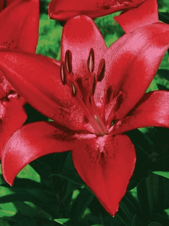 Луковицы Лилии ЛА-гибрид Коларес (Lilium LA-hybrids Colares) вырастут в гигантское растение, достигающее полутора метров в высоту. К выбору места для посадки нужно подходить осмысленно, высаживая лилию на заднем плане бордюров. Восхищения заслуживают направленные вверх цветки красно-кораллового цвета с редким крапом в центре. Лепестки слегка подкручены внутрь и имеют характерный глянцевый блеск. В контрасте с изумрудно-зелеными листьями лилия смотрится ещё роскошнее. Помимо  впечатляющей красоты, Коларес источает сильный сладкий аромат. Каждое растение с множеством цветов на одном стебле ―  это готовый букет на садовом участке.
