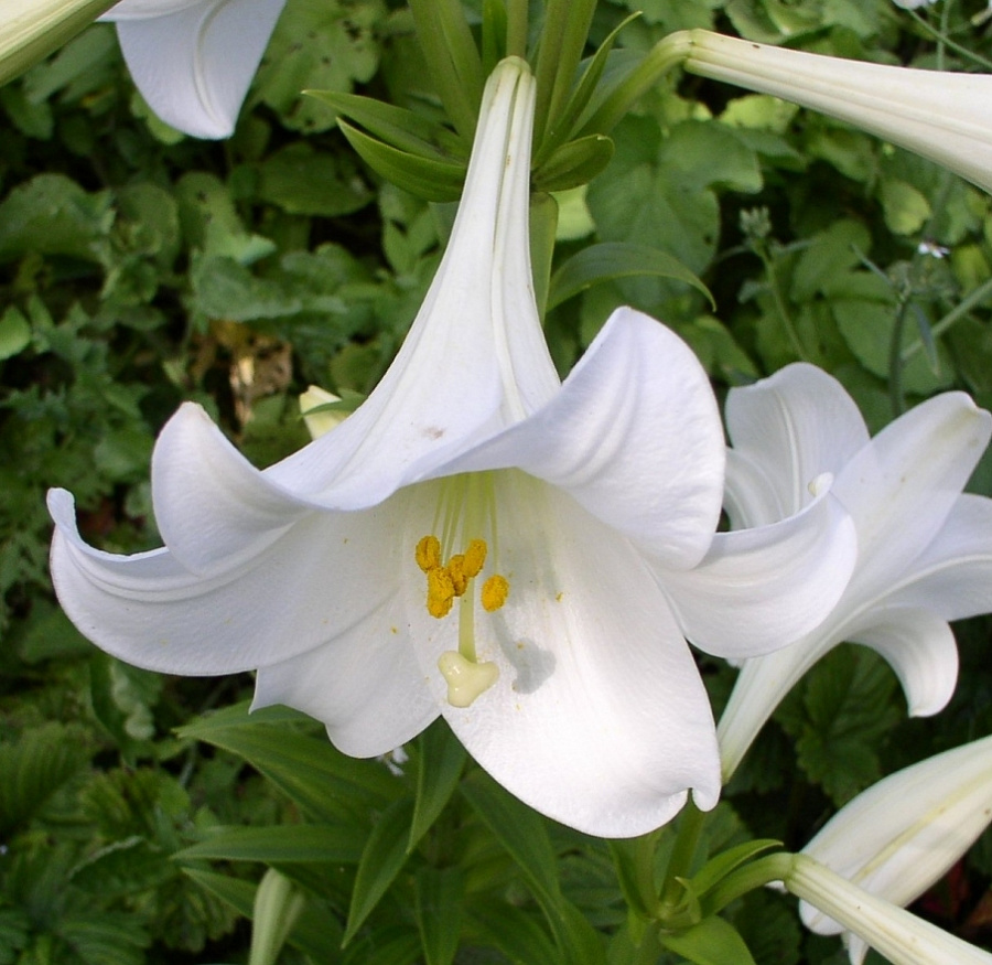 Лилия Longiflorum White Heaven - это воплощение нежности и изысканности в вашем саду. Ее стебель достигает высоты до 110 см, а цветки белоснежные с зеленоватым центром радуют глаз размером от 15 до 20 см. Листья этого растения имеют форму, напоминающую стрелу, что добавляет ему изюминку.