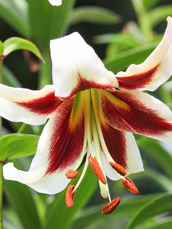 Окраска цветка : цветок белый с винно-красным центром