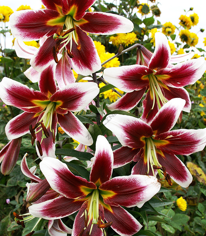 Луковицы декоративной лилии ОТ-гибрид Джудит Саффинья (Lilium OT-hybrid Judith Saffigna) прекрасно подойдут любителям контрастных клумб и сочных красок. Окраска цветка бордовая с зеленой, едва видной сердцевинкой и чисто-белыми концами лепестков. По краю каждого проложена белая тонкая окантовка. Концы волнистых лепестков загибаются от центра, что делает головку раскрытой почти полностью. Диаметр цветка около 22 см, аромат средний, ненавязчивый. Высота многолетника – 130 см, листья темно-зеленые, широкие, густо посаженные на стволе. Цветки прекрасно смотрятся в срезанных букетах и легко выгоняются в теплицах круглый год.