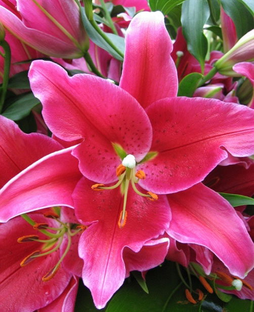 Саженцы и рассада Лилии восточной Арабиан Ред (Lilium oriental Arabian Red) принесут на клумбы яркость и сочность. Темно-красные крупные цветы с белым горлышком и крапчатыми лепестками, диаметром до 20 см, обладают сильным ароматом и привлекательной для насекомых окраской. Высота растения до 110 см, длина листьев до 25 см. Период цветения начинается июле, привлекательный декоративный вид и зелень сохраняется до глубокой осени, на зиму хорошо укрываются. При посадке требуют теплого светлого или полутеневого места с хорошо дренированной почвой. Пригодны для выращивания в помещениях, в цветочных горшках, в открытом грунте и теплицах.