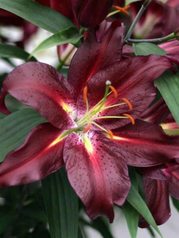 Лилия восточная "Коммитмент" - это великолепное растение, которое поразит вас своей красотой и изысканностью. Ее стебель достигает высоты до 100-120 см, а цветки красного цвета с темным крапом радуют глаз в течение 4-6 недель. Листья зеленого цвета имеют интересную форму, что делает лилию еще более привлекательной.