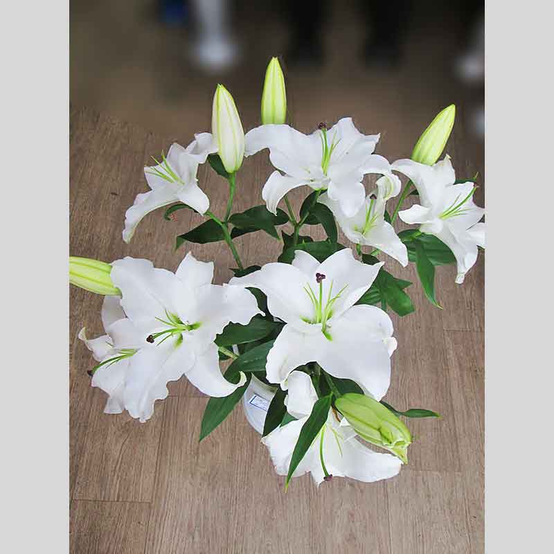 Луковицы лилии восточной Нова Зембла (Lilium hybrid oriental Nova Zembla) — это изысканный цветок для клумб и букетов. Он распускается во второй половине лета, и на высоких цветоносах (до 100 см) одновременно появляется до 8 цветов, до 20 см в диаметре каждый. Их лепестки классического белого цвета, очень легкие и ажурные, у центра присутствует незначительный оттенок зеленого. Лилия Нова Зембла незаменима при создании букетов. Эти цветы могут быть как центральной деталью композиции, так и оттенять другие, слишком яркие расцветки. Уход за этим сортом несложен: растение адаптировано к условиям умеренного климата и без проблем переносит летние и зимние перепады температур в открытом грунте.