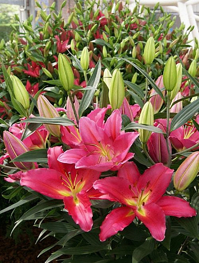 Лилия восточная Тарранго - это изысканное растение, которое поразит вас своей красотой и изяществом. Ее стебель достигает высоты от 60 до 120 см, а ярко-розовые цветки с жёлто-зелёным центром привлекают внимание своей неповторимой окраской. Листья лилии имеют зеленую летнюю окраску и создают утонченный контраст с яркими цветами.