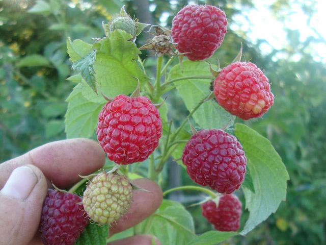 Саженцы Малины ремонтантной Августина (Rubus idaeus) как сорт были выведены российскими селекционерами. Кусты у Августины компактные, не больше 2-х метров в высоту, покрытые небольшими шипами, не требуют подвязки. Плодоношение происходит в два этапа. Первый урожай можно собрать в первой половине июня, а основной уже к середине августа, причем плодоношение будет продолжаться вплоть до наступления первых заморозков.