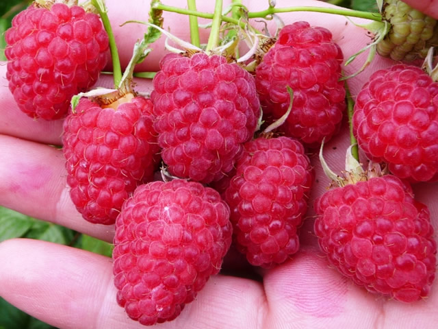 Саженцы малины сортовой Награда тонкие, покрыты тонким восковым налетом. Осенью побеги приобретают рубиновый оттенок. Шипы внушительных размеров располагаются на нижней части побегов, цвет их – от вишневого до пурпурного. Сорт отличается крупными плодами темно-красного цвета. Сладкие плоды с легкой кислинкой, мякоть очень ароматная, сочная. Растение необходимо защищать от ряда вредителей и болезней:
