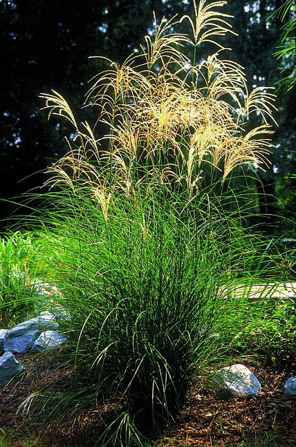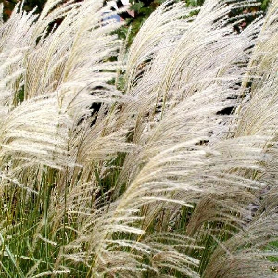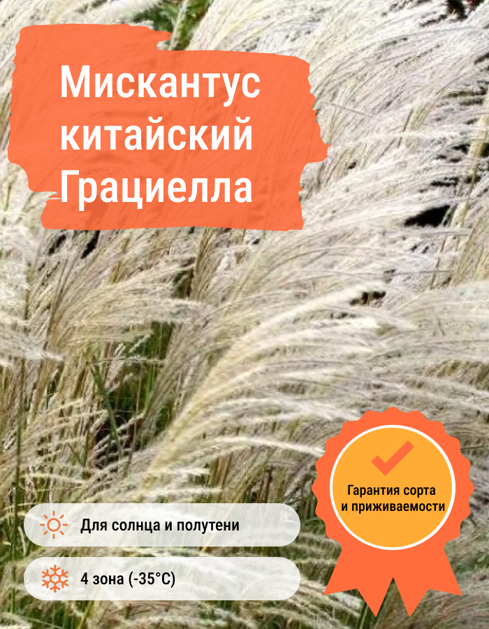 Саженцы мискантуса китайского Грациелла (Miscanthus sinensis Graziella) сохраняют декоративность с ранней весны до поздней осени, поэтому прекрасно подходят для украшения садовых объектов. Высота этого мощного злакового куста может достигать 2 метров. В сентябре зеленые листья растения приобретают темно-красный, желтый или коричневый оттенок.