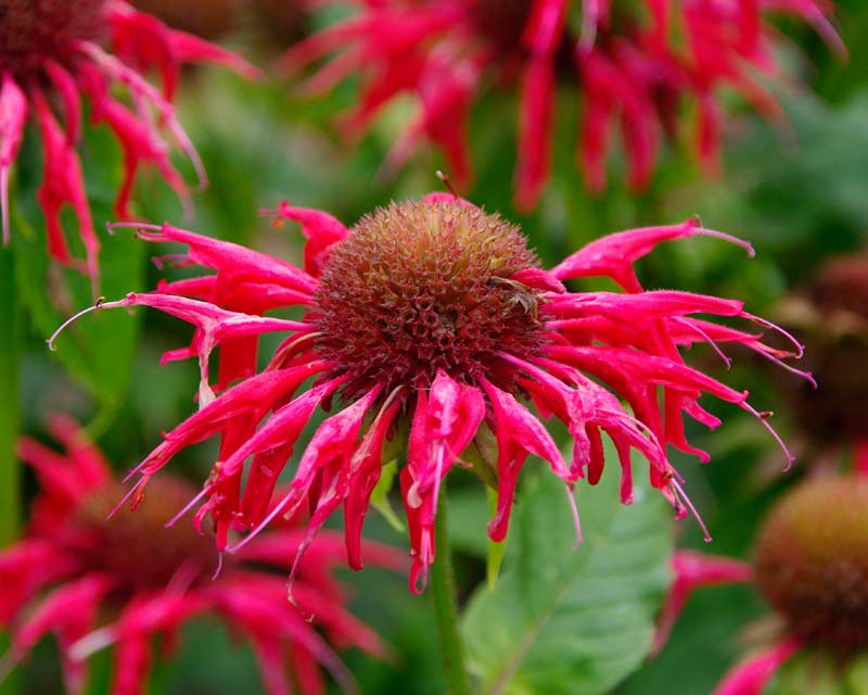 Монарда гибридная Кембридж Скарлет цветет ярко-малиновыми небольшими шарообразными бутончиками с тоненькими лепестками. Растение без проблем переносит морозы в открытом грунте и уже весной радует молодыми побегами. Размножать можно семенами, высевая их сразу в открытый грунт или предварительно выращивая рассаду.