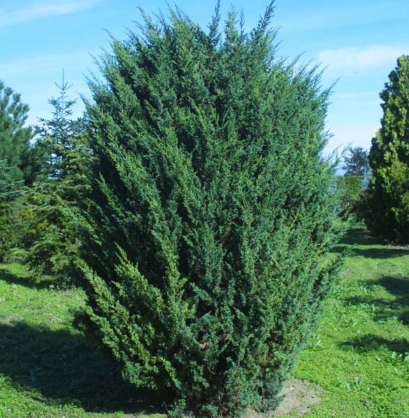 Саженцы можжевельника китайского Блаув (Blaauw) хорошо приживутся практически в любом грунте, кроме пересушенных или с застоем влаги. Световой режим — солнце и полутень. Морозостоек. Форма кроны сначала — обратный конус, позже — колоновидная. Хвоя серо-голубая или серо-зелёная. Скорость роста около 5-10 см в год, в максимуме имеет размеры около 2 м в высоту и 1,5 м в диаметре. Хорошо переносит стрижку. Высаживается в различных композициях. Можжевельник Блаув может культивироваться в контейнерной форме и высаживаться в грунт крупномером.