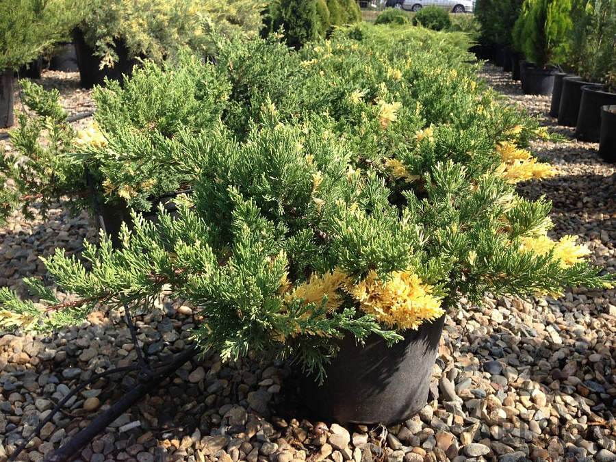 Саженцы можжевельника Вариегата (Variegata) дают яркий декоративный кустарник с белесой хвоей и под цвет нее шишечками размером в сантиметр. Куст станет украшением для многих видов газонов, годится для бордюрных композиций. Для выращивания и ухода немаловажно, что растение неприхотливо к условиям произрастания: