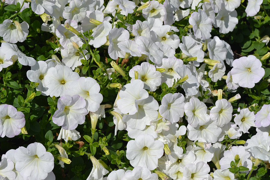 Петуния ампельная "Лавина Белая" - это воплощение нежности и изысканности в вашем саду. Ее стебли гибкие, как танцующие вальс лозы, позволяют создать удивительные композиции на вашем участке. Растение поражает своей изящностью и красотой, будто белоснежные облака на ясном небе.