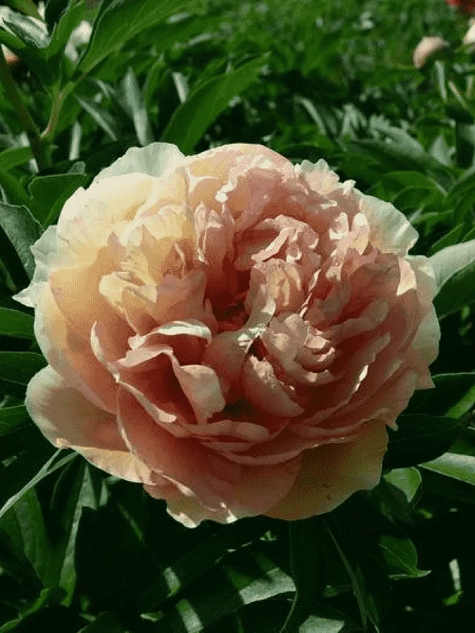 Рассада пиона ИТО Кенари Бриллиантс (Canary Brilliants), не доставит хлопот садоводу и превратится в декоративные кусты с очаровательными кудрявыми цветами. Взрослое растение – раскидистый, но компактный куст, не выше 1 м. Окраска цветов переливается оттенками от лососевого до персикового. Листва посеченная, темно-зеленая. Прочные побеги хорошо удерживают пышные соцветия. Основание ствола покрывается древесной корой. Особенности посадки пиона Кенари Бриллиантс: