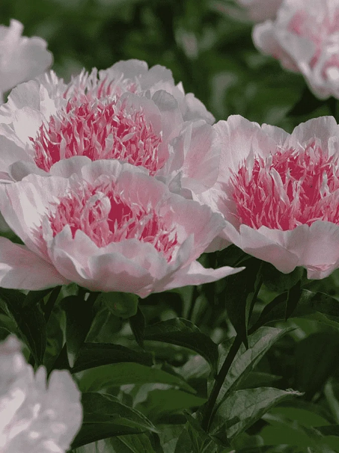 Пион молочноцветковый Ду Телл получил медаль от американского сообщества, и его семена широко используются в селекции. Порадовать своим эффектным цветением может уже в конце мая. Прекрасно смотрится в летних букетах.