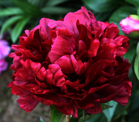 Саженцы пионов Француа Ортега (Francois Ortega) практически не болеют и не поражаются вредителями. Высота взрослого кустарника составляет 1 м. Стебли ветвистые, мясистые, темно-зеленого цвета, на которых располагаются крупные зеленые листья. Цветки достаточно большие (17 см в диаметре), махровые. Окрашены они в бордово-красный цвет. Период цветения начинается с мая и длится до июня. Также от цветов исходит прекрасный приятный аромат. Сорт саженцев пионов Француа Ортега предпочитает расти на богатой органикой, плодородной, хорошо взрыхленной и влажной почве.