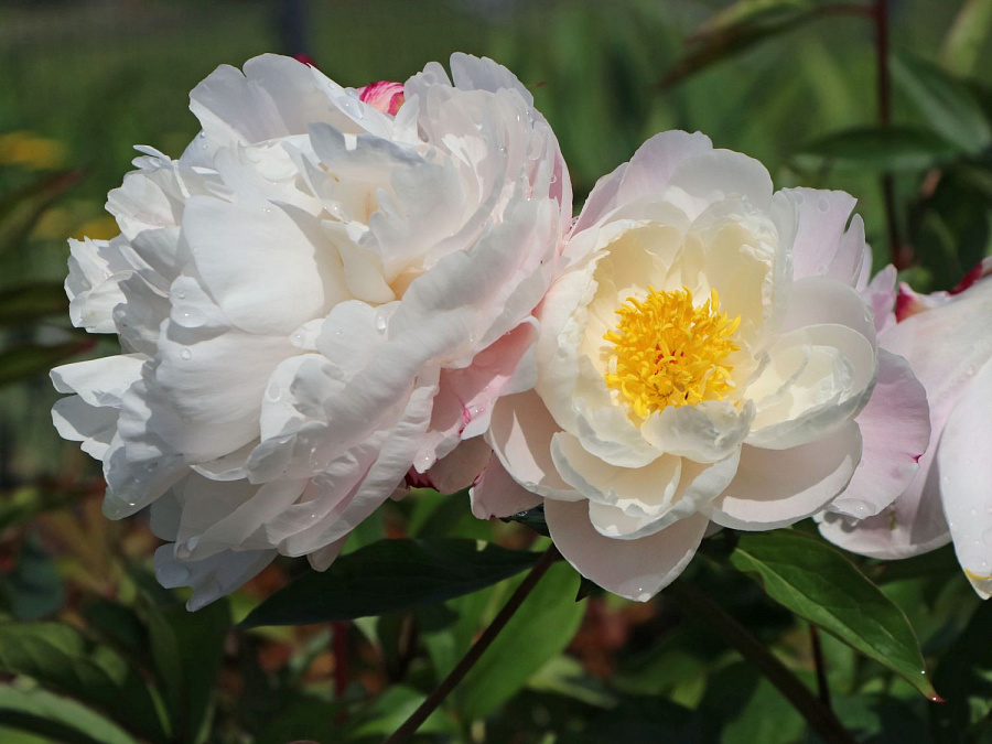 Пион Молочноцветковый Lady Alexandra Duff (Леди Александра Дафф) - эффектный цветущий многолетник с роскошными цветками. Высота взрослого растения: до 90 см.Цветки полумахровые, диаметром 15 см., бледно-сиренево-розовые с жёлтыми тычинками, которые смешанны с несколькими нерегулярными лепестками в центре. Пион цветёт обильно. Листья тёмно-зелёные, блестящие. Ажурная пышная листва сохраняется до поздней осени. Лучше всего растёт и цветёт на солнечных местах, выносит полутень. Предпочитает дренированную, увлажнённую, слабокислую или нейтральную, плодородную суглинистую почву. Плохо переносит длительный застой воды в почве или заболачивание, в таких условиях растение может поражаться грибковым заболеванием - серой плесенью. Не любит сильное уплотнение почвы. В жаркий сезон растение нуждается в умеренном поливе. Может использоваться для одиночных или групповых посадок в садах, парках, для украшения парадных мест. Подходит для срезки.