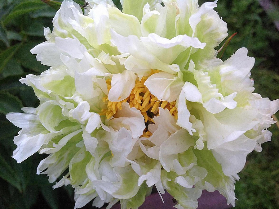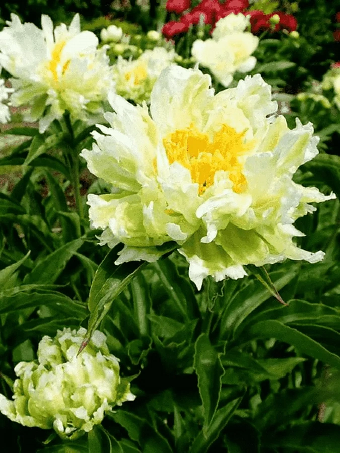 Пион травянистый Грин Гало ― многолетний кустарник с махровыми кремово-зелеными цветами с белыми обрамлением. Относится к редким коллекционным сортам и имеет необычные тройчатые листы. Высота взрослого растения составляет 75 сантиметров, размер соцветий ― 17 сантиметров. Цветение протекает с конца мая до середины июня. Саженцы высаживаются в нейтральную суглинистую почву в открытом солнечном месте. В засушливых районах цветы можно выращивать в тени дерева. Рассаду нельзя садить на чрезмерно влажных участках, особенно в местах, где неподалеку протекают грунтовые воды. Грин Гало относится к морозостойким растениям и подойдет для декорирования парковых массивов и озеленительных работ.