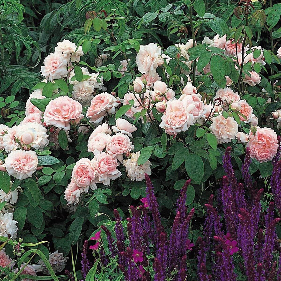 Саженцы розы английской кустовой Eglantyne довольно популярны среди цветоводов благодаря своей неприхотливости, устойчивости к болезням, вредителям, морозам, засухе, обильно и продолжительно цветут. Куст растет ветвисто, раскидывается в ширину до 125 см, в высоту разрастается до 150 см. Побеги густо покрыты шипами и матовой зеленой листвой. Цветы располагаются по 3-9 штук. Они достаточно крупные, изысканной формы, нежно-розового цвета с немного закрученными по краю лепестками. На протяжении всего цветения от розы английской кустовой Eglantyne исходит тонкий приятный аромат.