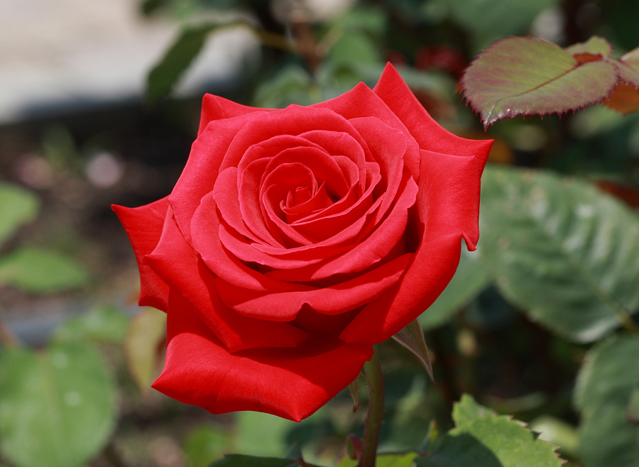 Роза чайно-гибридная Лидка - это великолепное растение с темно-зелеными листьями и красивыми красными цветками. Ее ствол прочный, а размеры достигают высоты до 140 см и диаметра до 70 см. Листья имеют интересную форму, что делает эту розу еще более привлекательной.