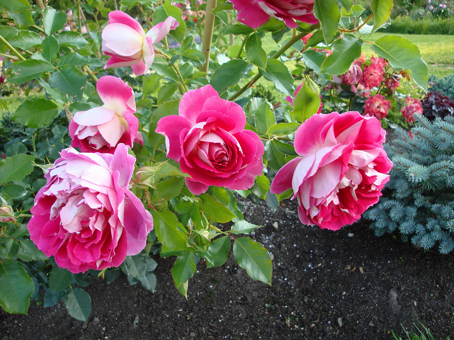 Листья розы имеют темно-зеленую весеннюю окраску и прекрасную форму, что добавляет ей изящества и шарма. Это растение предпочитает обогащенные почвы и хорошо растет на солнечных участках. Для достижения наилучших результатов, рекомендуется регулярный полив и удобрения в период активного роста.