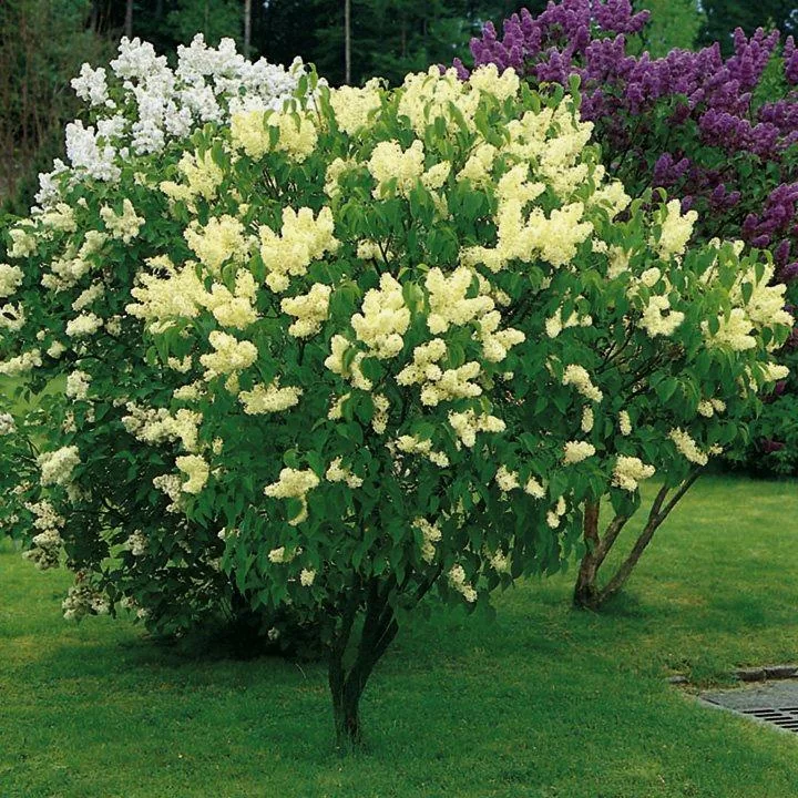 Саженцы сирени обыкновенной Примроуз (Primerose) подарят садоводу уникальную возможность обладать единственным сортом сирени, цветущей жёлтым, с кремовым оттенком. Кустарник средней величины — до 2,5 метров в высоту, раскидистый. Цветы собраны в соцветия до 20 см длиной, время цветения — май-июнь. Световой режим — солнце, возможна полутень, в тени теряет декоративность. Есть возможность приобретения крупномеров сирени Примроуз.