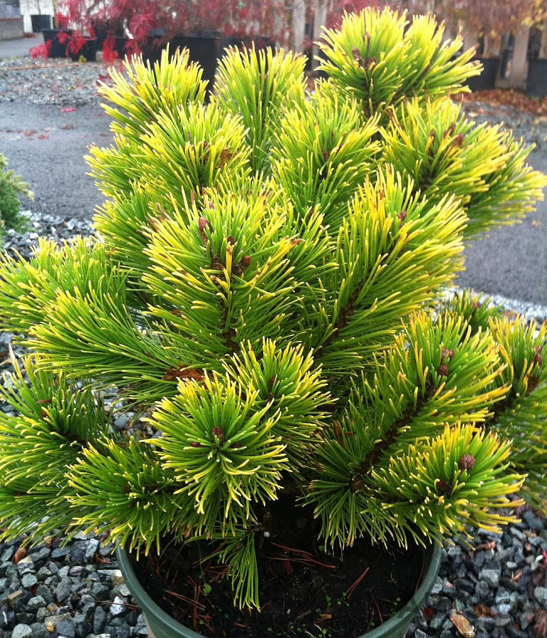 Саженцы сосны горной Карстенс Винтерголд (Carsten's Wintergold и крупномеры сорта даже после достижения взрослого возраста не становятся больше полутора метров в высоту, в чем и заключается их особенная прелесть. Привлекает яркой окраской хвои, которая особенно выделяется на фоне снега своим желто-зеленым оттенком. Летом цвет другой – более зеленый. Хорошо переносит городские условия, высаживается в парках. Морозоустойчивость тоже достаточно хорошая. Особенных требований к почве нет, но хорошо относится к дренированной. Отличный выбор как для начинающих, так и для опытных садоводов.