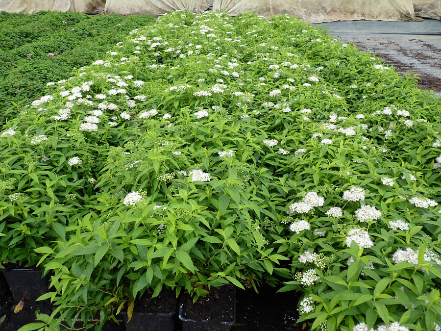Неприхотливые саженцы спиреи Альбифлора будут отлично смотреться в сочетании с хвойными кустарниками и спиреями другой расцветки.