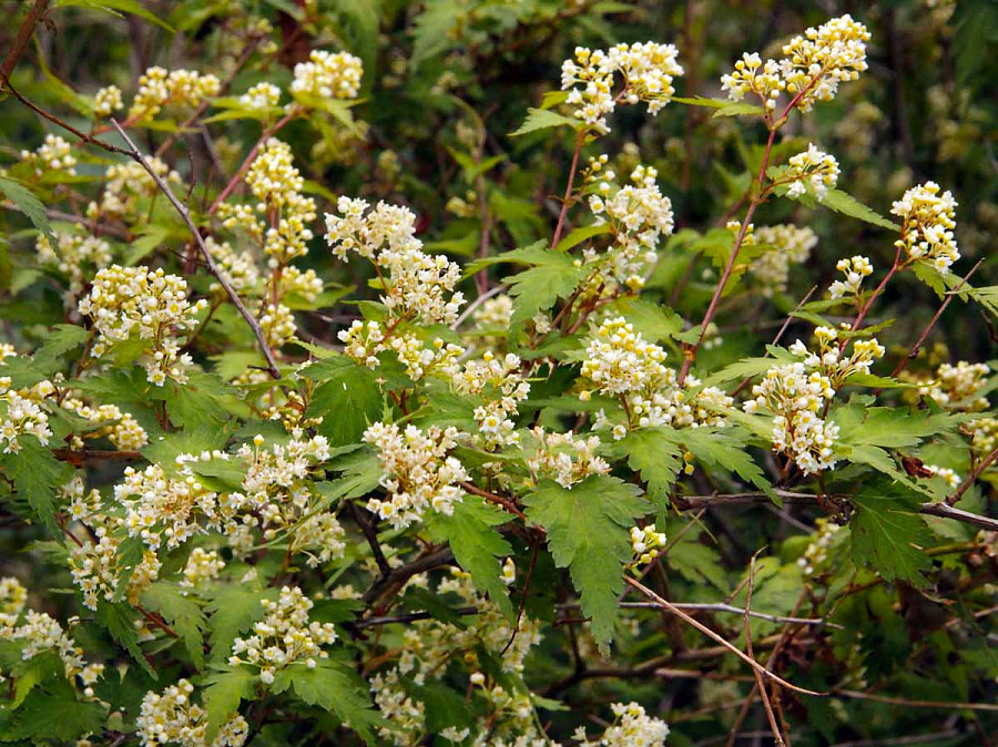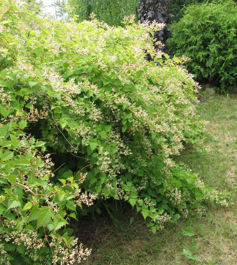 Саженцы стефанандры Танаки подарят саду высокорослый раскидистый кустарник с изящными листьями и воздушной кроной. Именно форма листьев и составляет основную декоративность кустарника. Основание листочка сердцевидное, а конец сильно заостренный, края крупнозубчатые. Поверхность самого листа выглядит морщинистой из-за глубоко вдавленных жилок. Осенью окраска разнообразна: от стандартных желтых до пурпурных и коричневых тонов. Мелкие белые цветочки собраны в метельчатые соцветия. Крупномеры позволят ощутить всю декоративность стефанандры Танаки уже сразу после посадки.