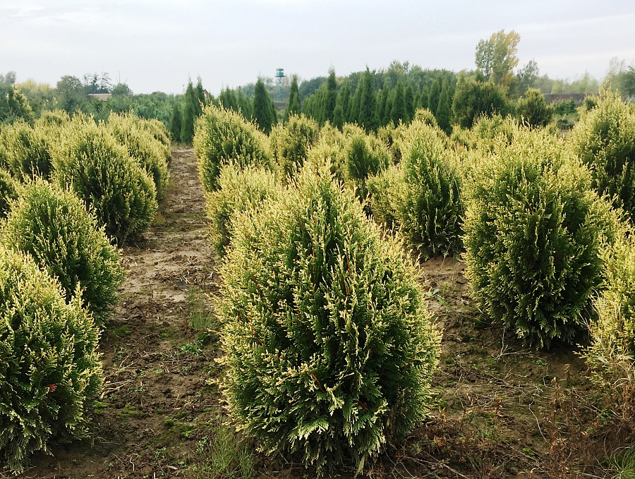 Саженцы Туи складчатой Корник III (Kornik III) вырастают в мощное дерево с пирамидальной кроной и блестящей ароматной хвоей, подходящее для шпалер и живых изгородей. Для крупномеров и саженцев подбирают плодородную и влажную почву, на полутенистое место. Растения: