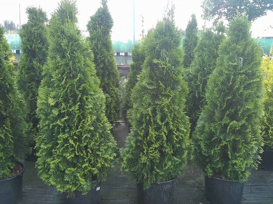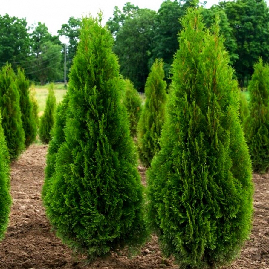 Саженцы туи западной Холмструп (Holmstrup) похожи на вечнозеленые округлые конусы, благодаря низкому ветвлению и узким макушкам. Высота густых крон достигает 3-4 м. Хвоя мягкая, чешуйчатая, темно-зеленого оттенка. Побеги крупномера плотно прижимаются к стволу и тянутся вверх. Плодоносит туя западная Холмструп мелкими круглыми светло-коричневыми шишками.