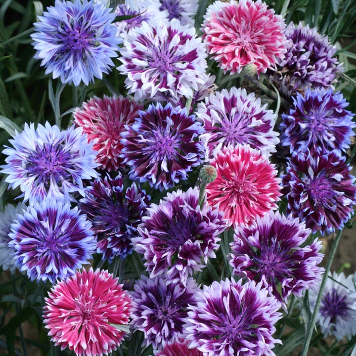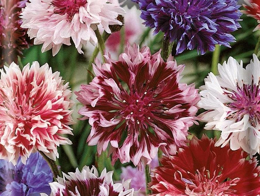Семена василька (волошки) Фрости Микс пользуются популярностью благодаря оригинальной расцветке цветочных лепестков — их кончики окрашены белым. Смесь содержит несколько сортов, позволяющих без труда создать разноцветную клумбу, заполнив ее белыми, фиолетовыми, синими, красными и бордовыми цветами. Для растения характерно продолжительное цветение, которое длится с июня до сентября. Семена василька (волошки) Фрости Микс предпочитают хорошо освещенные участки, а почва должна быть рыхлой, питательной, с нейтральной кислотностью. Кусты, вырастающие до 80 сантиметров в высоту, можно использовать для декорирования заборов, сооружений, создания бордюров. Махровые цветы прекрасно смотрятся в срезке.